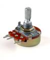 Connect to the center lug of the pot (the arrow on the schematic symbol) and one of the outside lugs. Twisting the shaft should change the tones. We’re using 100k pots, so you’re changing the resistance from 0 to 100k by twisting the shaft.