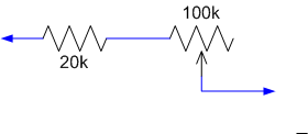 Resistors add together when connected in series (end-to-end), so instead of going from 0—100k, now we’re going from 20k – 120k. When I tried it, 20k seemed to be the smallest value that still made noize.