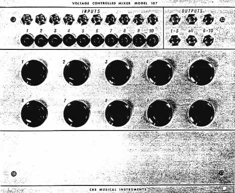 Buchla pages > Buchla 100 modules > 107 Voltage Controlled Mixer