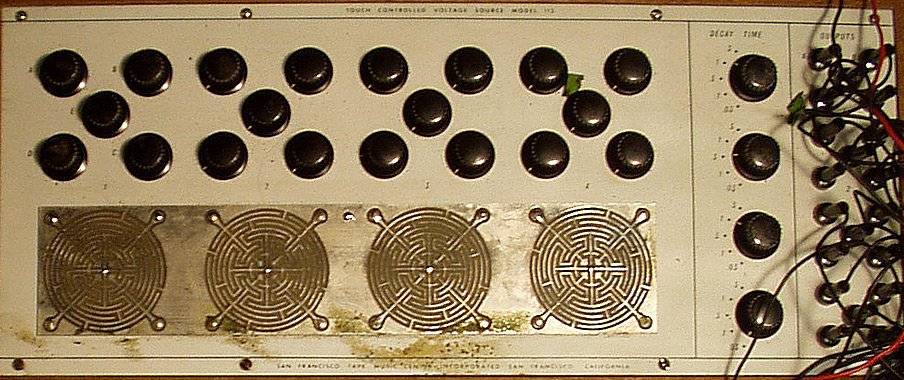 A touch-sensitive keyboard consisting of four circles, each of which is divided into five segments (1 central and 4 peripheral). Touching a segment causes an increase in voltage at a corresponding output. Switch-selected time constants provide extended attack and decay times. 20 potentiometers control the output voltages independently of or in conjunction with the keyboard.