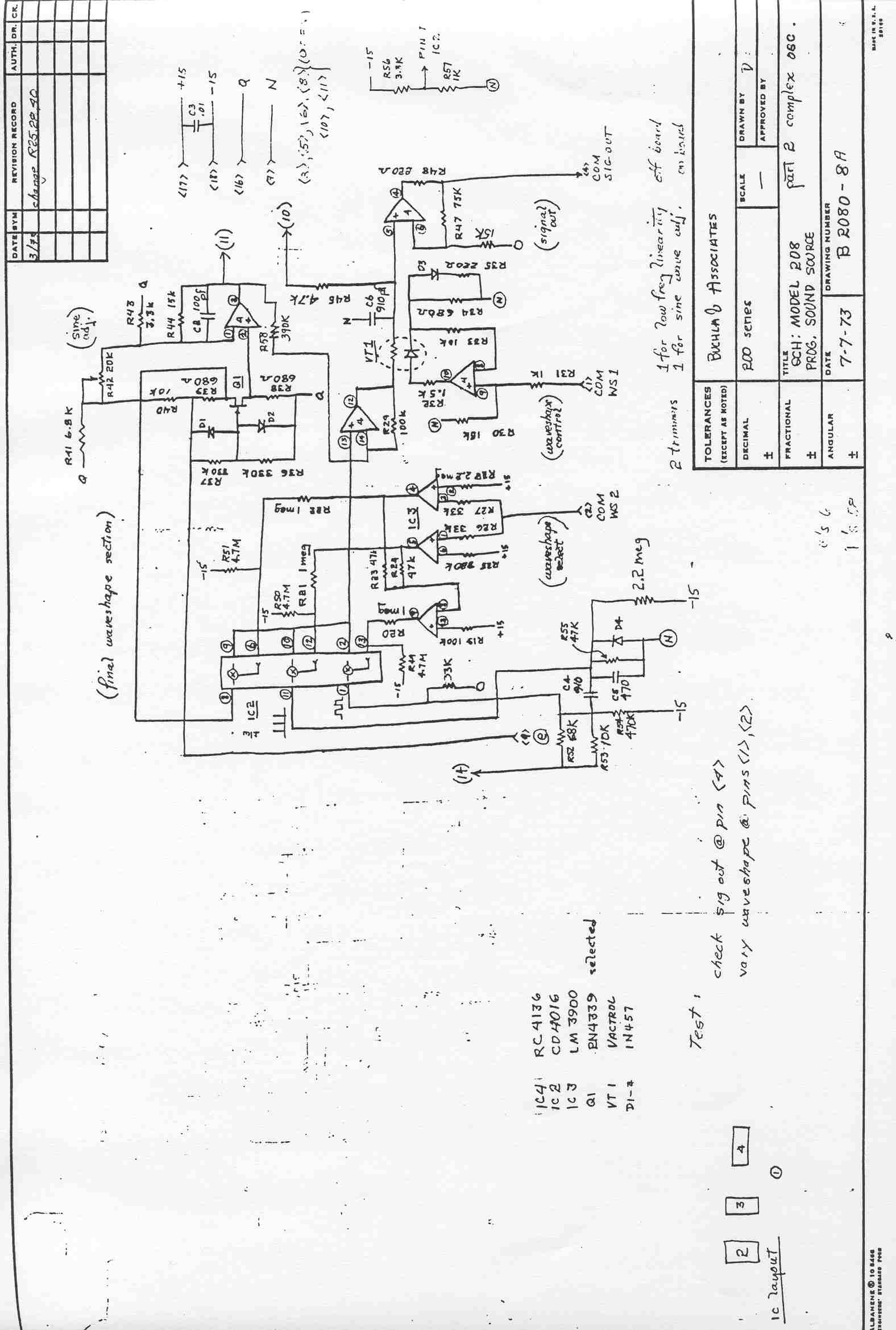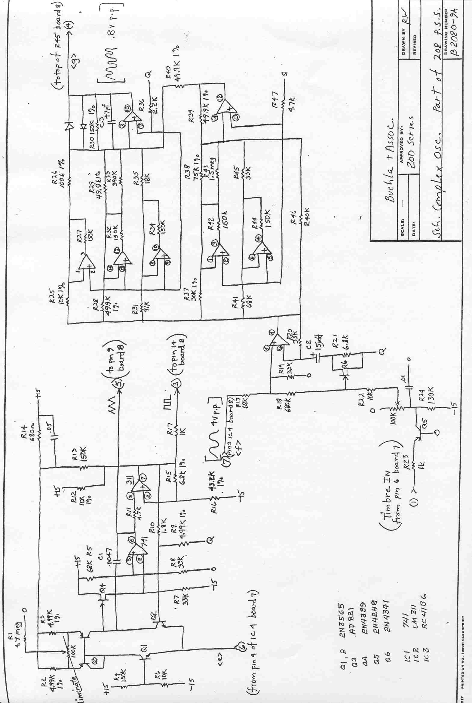The 208's primary signal source is the complex oscillator. This innovation applies a computer-developed technique of high-index bipolar modulation to the generation of complex audio spectra. The result is a timbral range unapproached by other musical instruments. Pitch, timbre, and waveshape are voltage controlled.